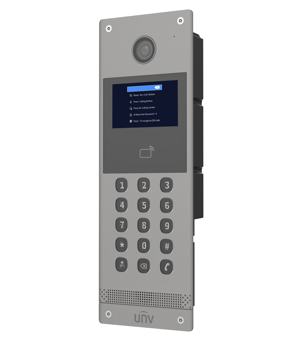 CMOS 2Мп цветный объектив, DWDR; Web интерфейс; Хранилище: 10,000 карт, Встроенный микрофон и динамик, PoE, 1 RS485 интерфейс, 1 Wiegand, 2 реле, тревожные вх./вых. 4/2, IP65, IK08, -40°C ~ 60°C, Металл, Поддержка приложения UNV-Link