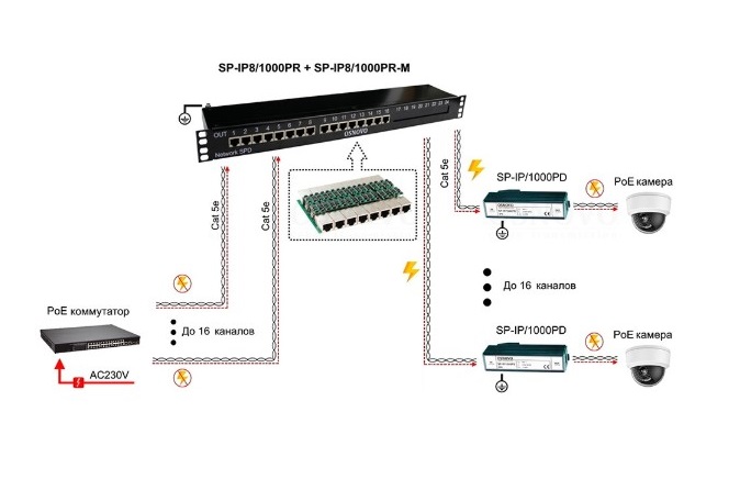 SP-IP8/1000PR-M Устройство грозозащиты цепей Ethernet