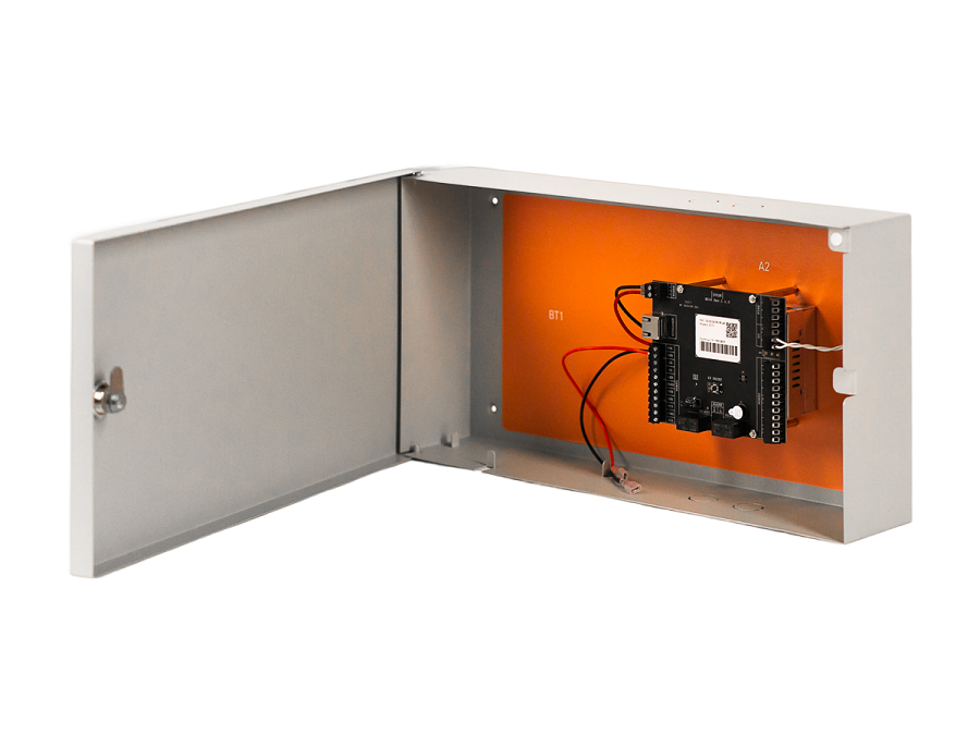 Sigur E210 UPS – расширенная комплектация контроллера E210, представляющая собой специализированный металлический бокс, в который установлен блок питания и предусмотрено место для учтановки аккумуляторной батареи.