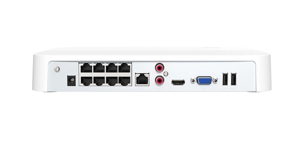 H.264, H.265, H.264+, H.265+;1 SATA для HDD до 10Тб; 8 независимых 100M PoE интерфейса; 1 RJ45 10M/100M Ethernet;